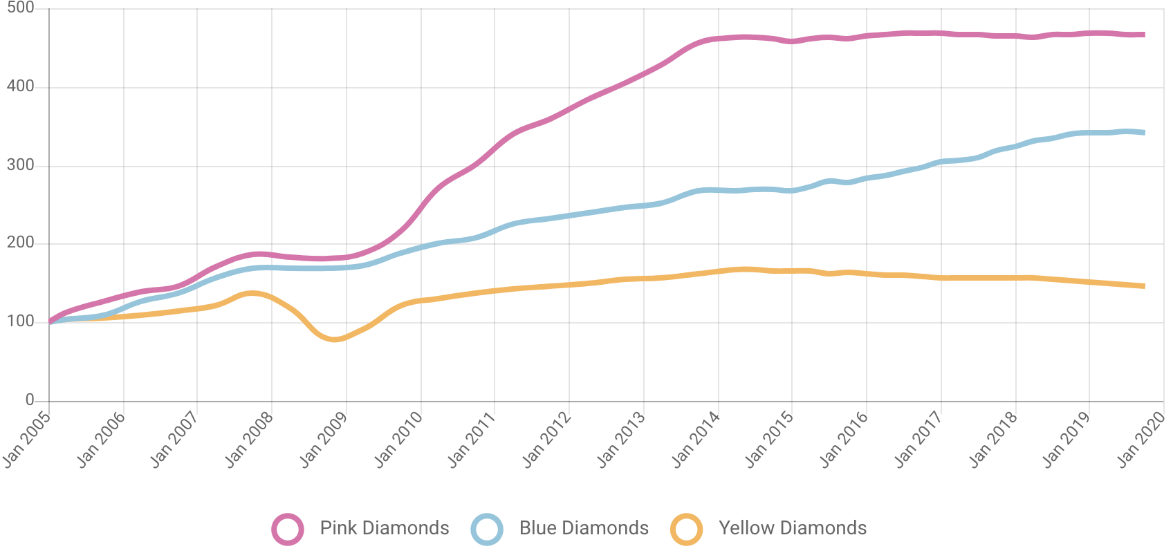 And as you can see from the graph above, pink diamonds were the best performing class of diamonds.