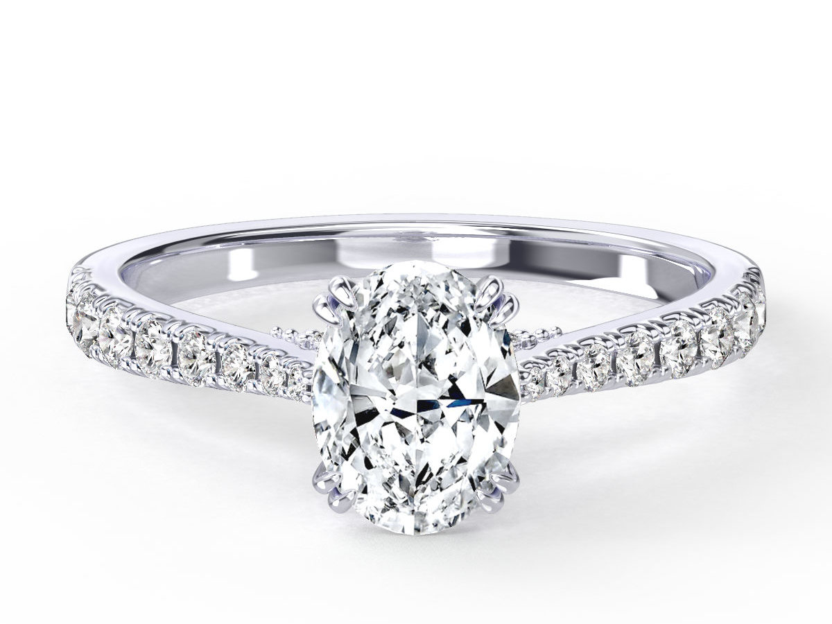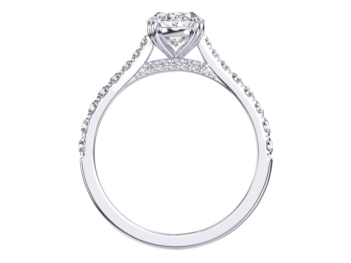 – Centre Diamond; 1,20ct Oval Brilliant Cut Diamond (excluded from price). As with most designs our Bela can be manufactured for a broad range of budgets. As your budget increases, we can improve the size and quality of the centre diamonds we offer.