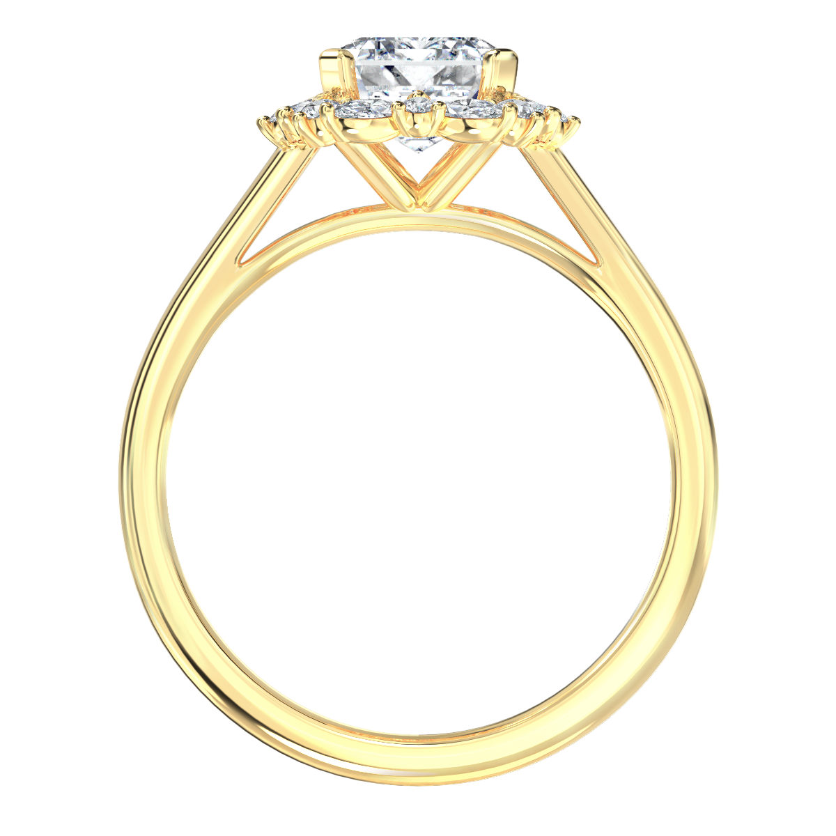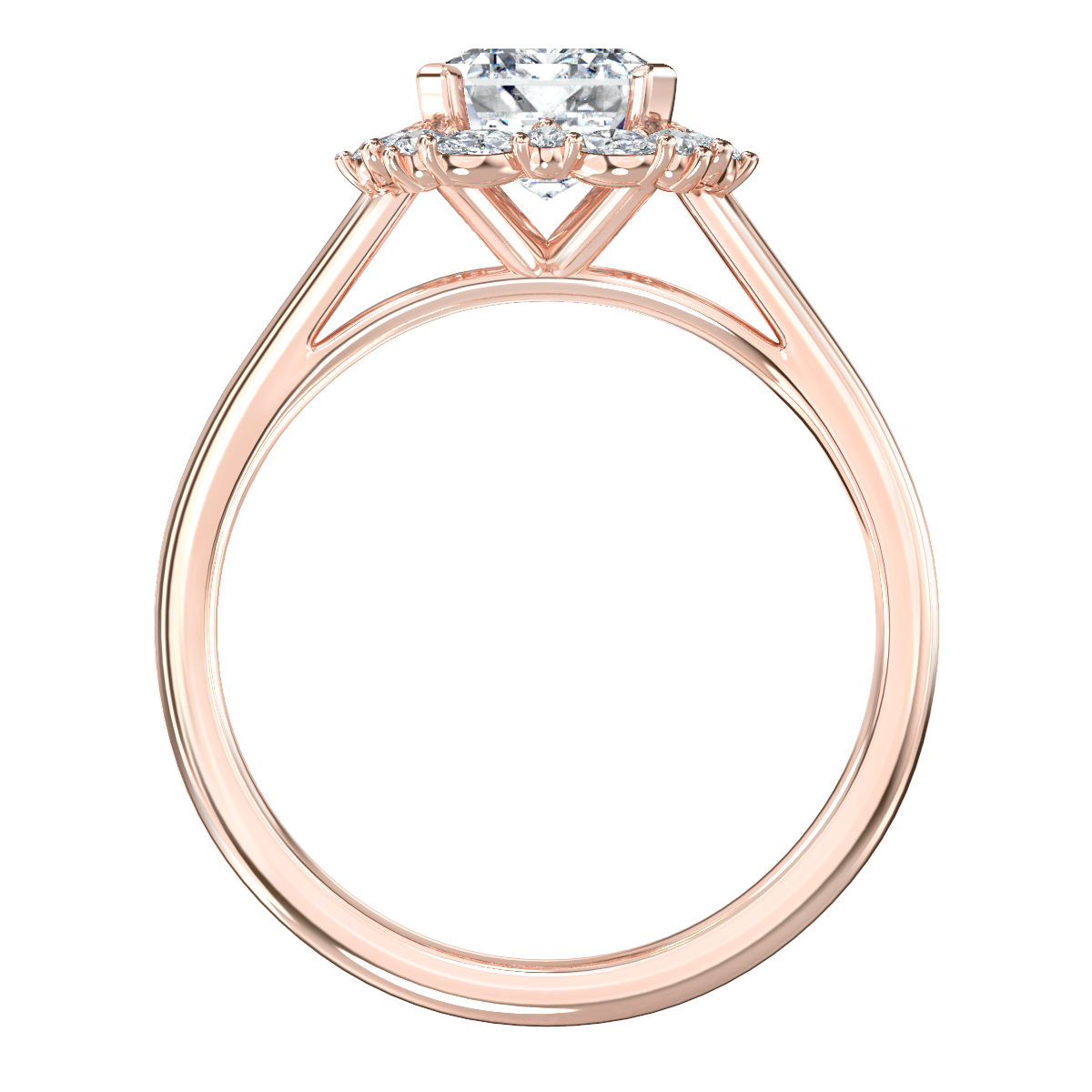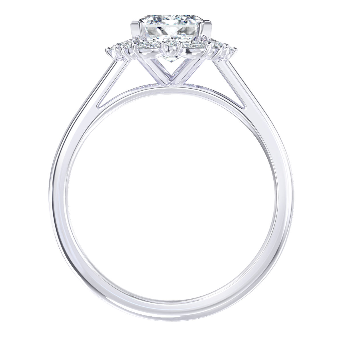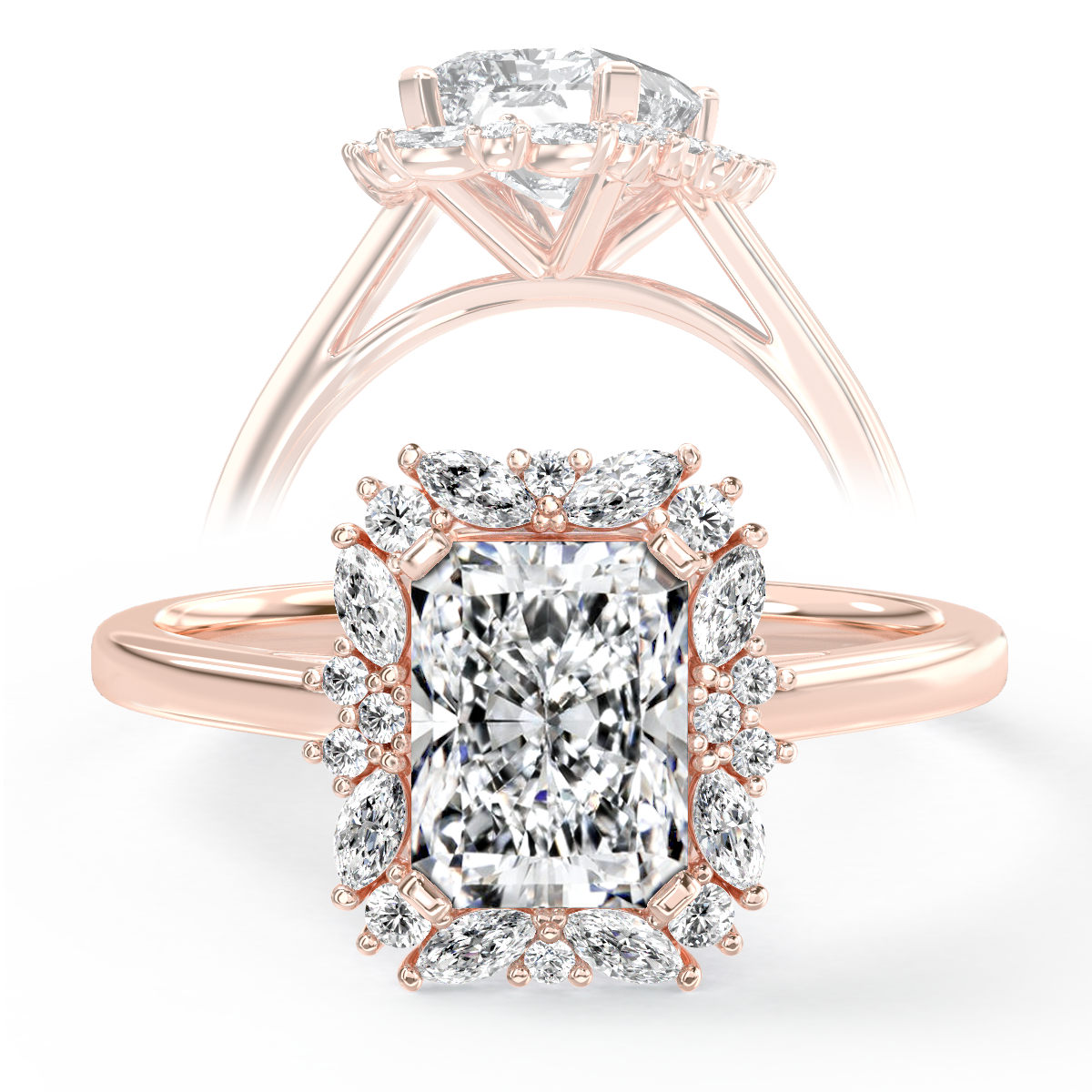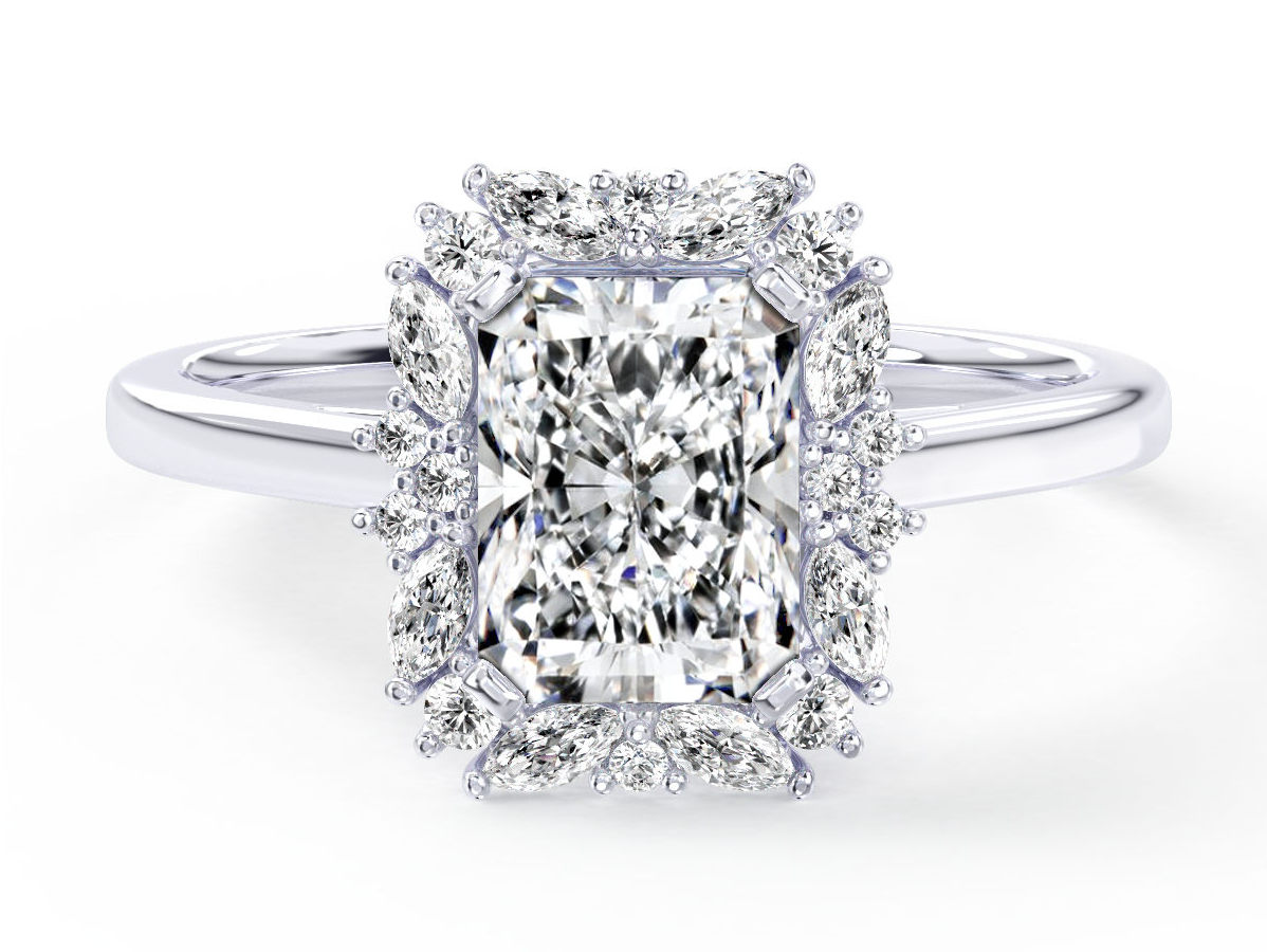 – Centre Diamond; 1,50ct Radiant Cut Diamond (excluded from price). As with most designs our Janine can be manufactured for a broad range of budgets. As your budget increases, we can improve the size and quality of the centre diamonds we offer.